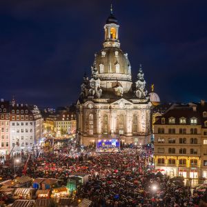Seien Sie auch dieses Jahr am 23. Dezember, 17 Uhr, beim größten regelmäßigen Open-Air-Gottesdienst Deutschlands dabei! Seit 1993 findet unsere einzigartige und bewegende Weihnachtliche Vesper vor der Frauenkirche statt. Es treten exzellente Chöre, Solisten und das Blechbläserensemble von Ludwig Güttler auf. Der Landesbischof, der Ministerpräsident, der Superintendent, der Dresdner Oberbürgermeister und die Frauenkirchenpfarrer wirken mit. Seit 2012 wird die Veranstaltung live im MDR FERNSEHEN übertragen und ist so auch in der Ferne zu erleben.