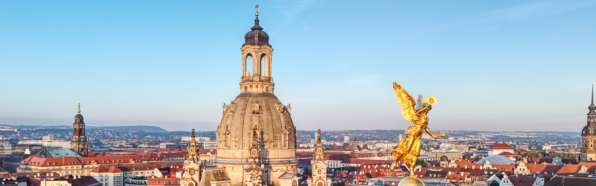 Zu früher Stunde zwischen Himmel und Erde den Tag begrüßen: Es ist 6 Uhr morgens. Die Sonne ist aufgegangen und wirft ein erstes Licht durch die Fenster der Frauenkirche. Wie im Kreuzgang eines Klosters durchschreiten die Gäste Bogen um Bogen der Wendelrampe hinauf zur Aussichtsplattform. Der meditative Weg zur Kuppel ist schon Teil der Andacht. Oben empfängt die Teilnehmenden Musik, wenn sie ins Freie treten und der weite Blick über Stadt und Elbtal sich öffnet. Ein neuer Tag. Die biblischen Worte klingen anders und neu vor dem Hintergrund dieser Morgenszene über den Dächern der Stadt. Lassen Sie sich einladen.
