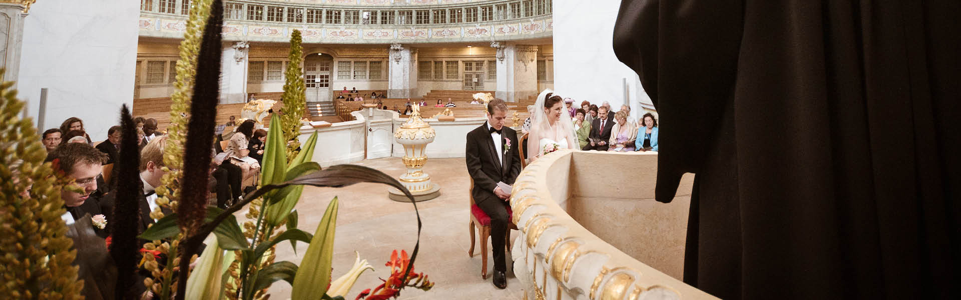 In der Frauenkirche Dresden können Paare ihren gemeinsamen Lebensweg als Eheleute unter den Segen Gottes stellen. Im Beisein ihrer Familien, Verwandten und Freunde feiern sie Gottesdienst. Mehr über Trauungen in der Frauenkirche erfahren Sie unter Besuchen > Gottesdienste.