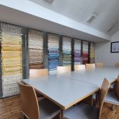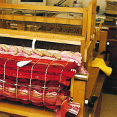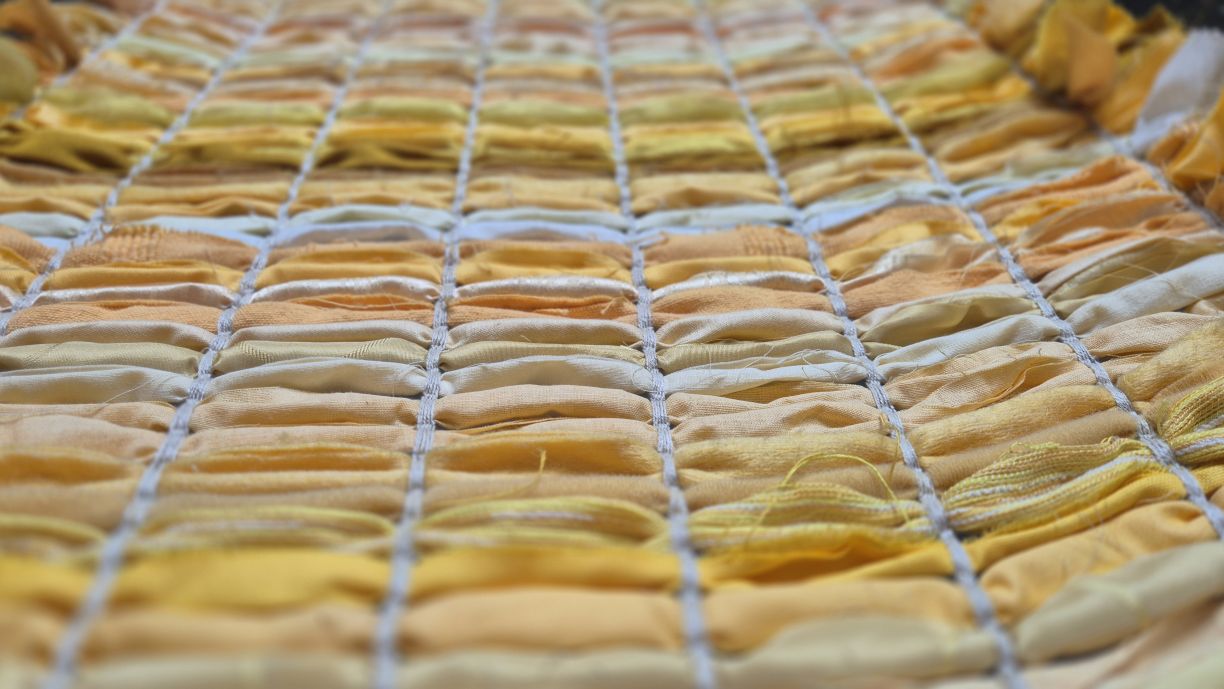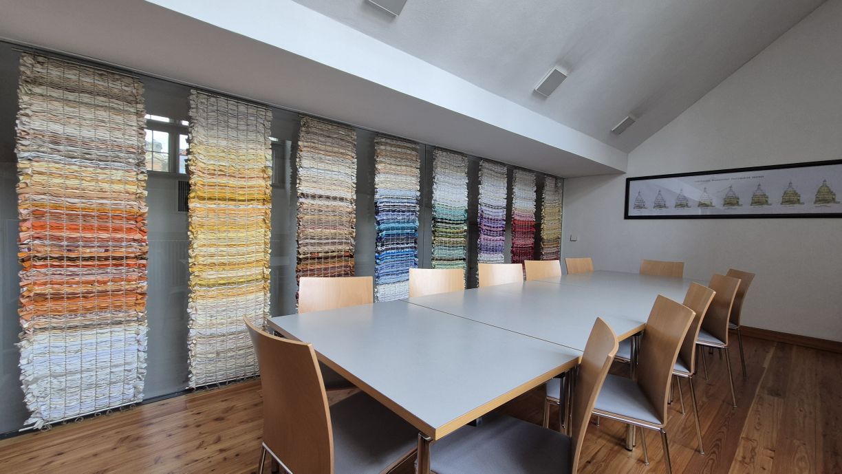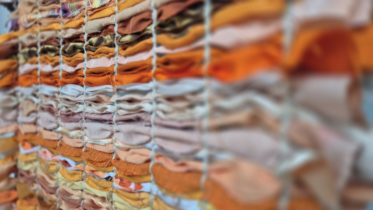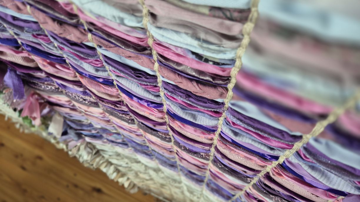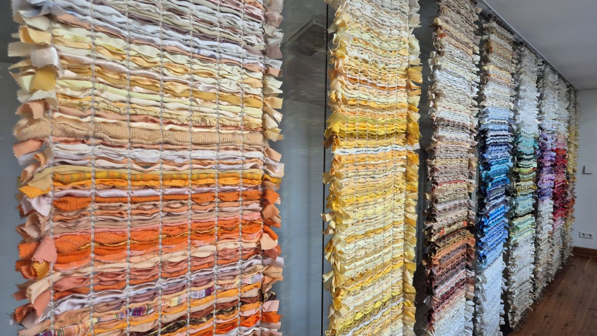 Eine ganze Klasse von Raumausstatter-Auszubildenden stiftete Stoffstreifen. Sie wollten damit ihre gemeinsame Ausbildungszeit festhalten – und die Erfahrung, wie wichtig Zusammenhalt und gegenseitige Unterstützung sind.
