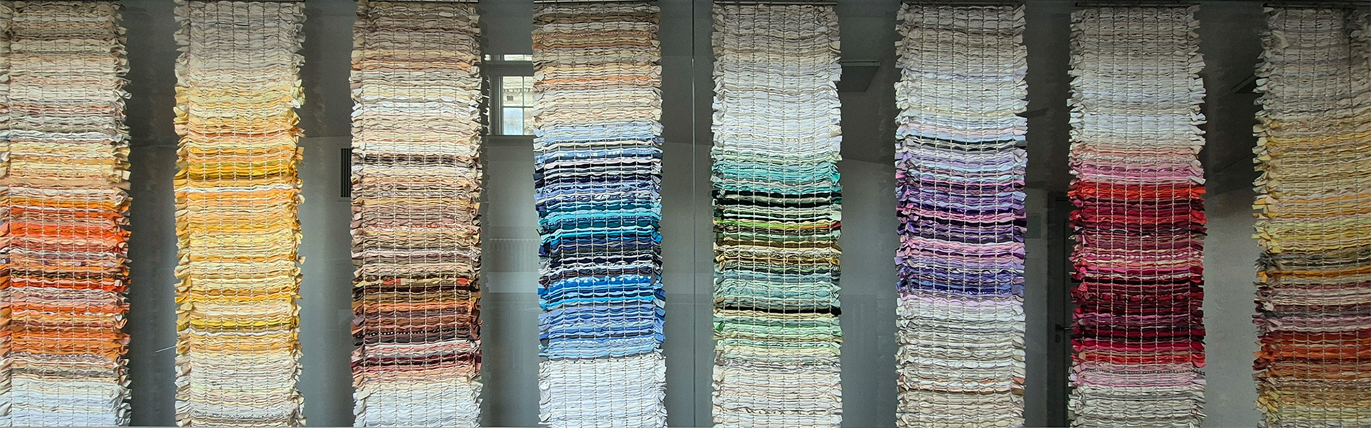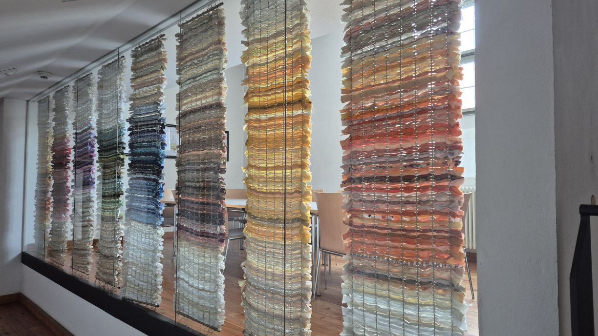 Die gewebten Lebenslinien verbinden lauter einzelne Stoffstreifen zu einem farbenreichen Ganzen – ein lebendiges Mosaik aus hellen und dunklen Tönen, aus kräftigen und zarten Farben, das die Vielfalt der Geschichten und Schicksale sichtbar macht.