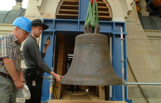 Die Gedächtnisglocke ist etwas Besonderes. Anders als ihre sieben Geschwister wurde sie nicht 2002/2003 gegossen, sondern hunderte Jahre früher: 1518 für das Kloster Altzella.