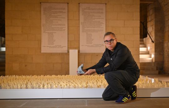Der spanische Künstler Fernando Sánchez Castillo präsentierte in der Unterkirche der Frauenkirche vom 21. Oktober bis 19. November 2025 eine Installation aus 5.000 Frauenfiguren: Sie knien und stellen Kerzen ab. Eine unerhört leise Geste, die an den 13. Februar 1982 erinnert, als junge Menschen an der Ruine der Kirche mit Kerzen stillen Protest wagten.