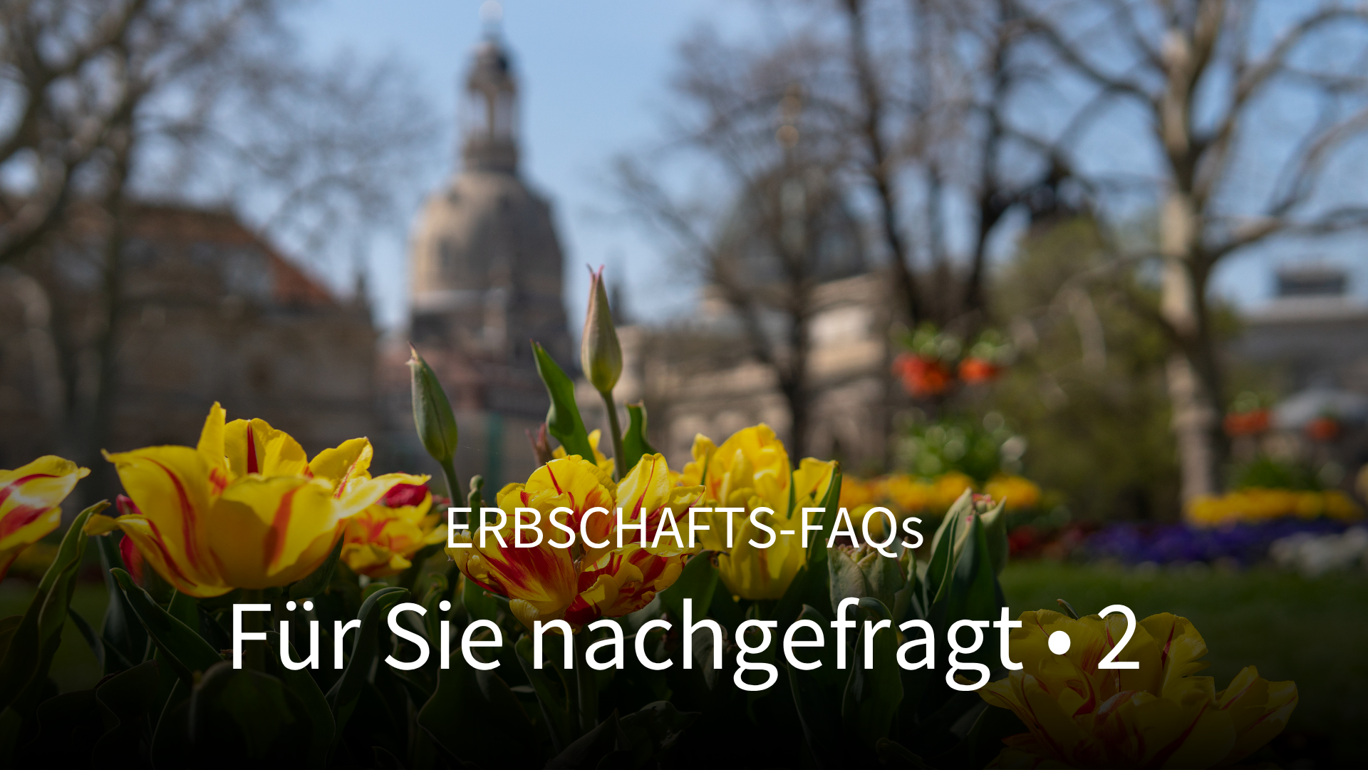 Die gemeinnützige Stiftung Frauenkirche Dresden ist von der Erbschaftssteuer befreit. Ihre Zuwendung kommt somit ohne Abzüge der Frauenkirche zugute.